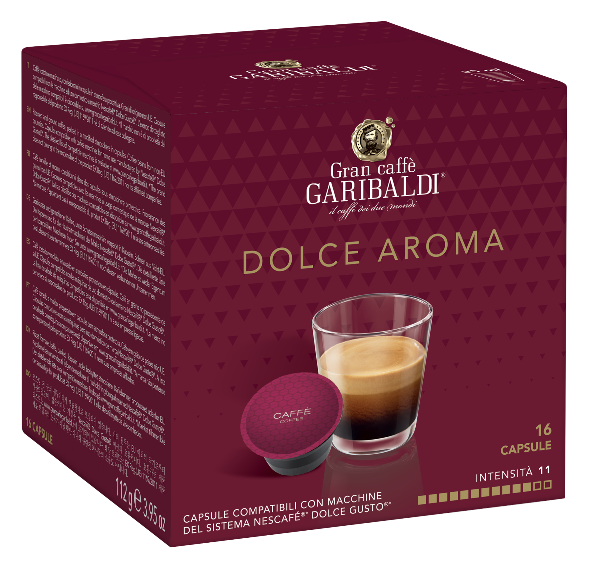 The box contains 16 capsules designed for NESCAFÉ® Dolce Gusto® capsule coffee machines to make 16 cups of GARIBALDI Dolce Aroma coffee. The coffee is packed in special hermetic capsules. In this way, the coffee retains its characteristic properties even after many months.